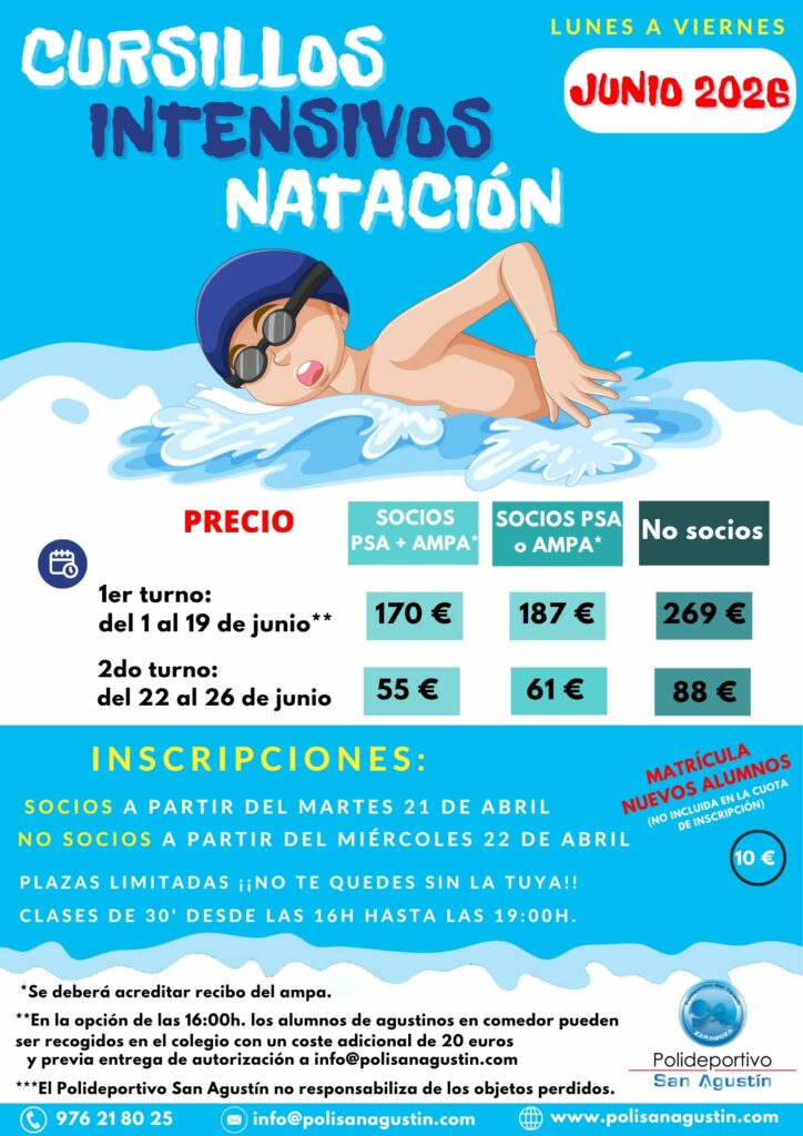 Este mes de junio, en el Polideportivo San Agustín lanzamos una nueva edición de nuestros cursillos intensivos de natación, diseñados para mejorar el nivel acuático de los más pequeños en un entorno seguro, dinámico y divertido.